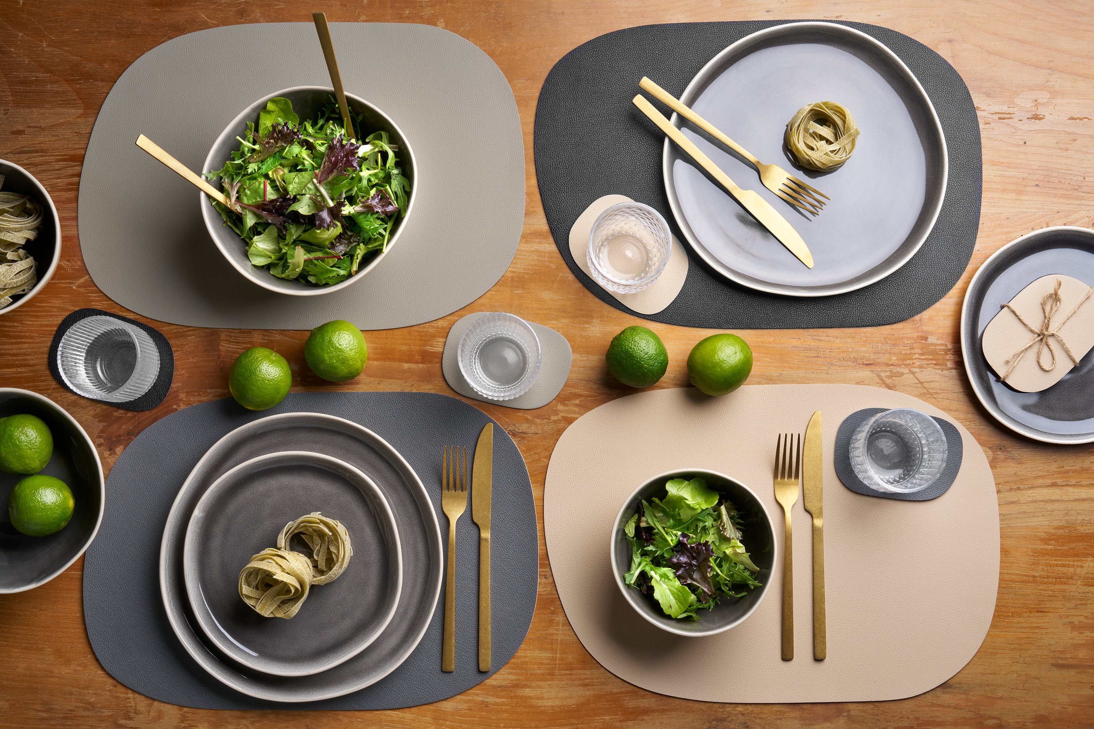 Zwei Farben, ein Look: Diese Wende-Untersetzer in edler Lederoptik verbinden Funktion mit feinem Stilgefühl. Mal clean in Schwarz, mal weich in Taupe – Du entscheidest, was zum Moment passt.