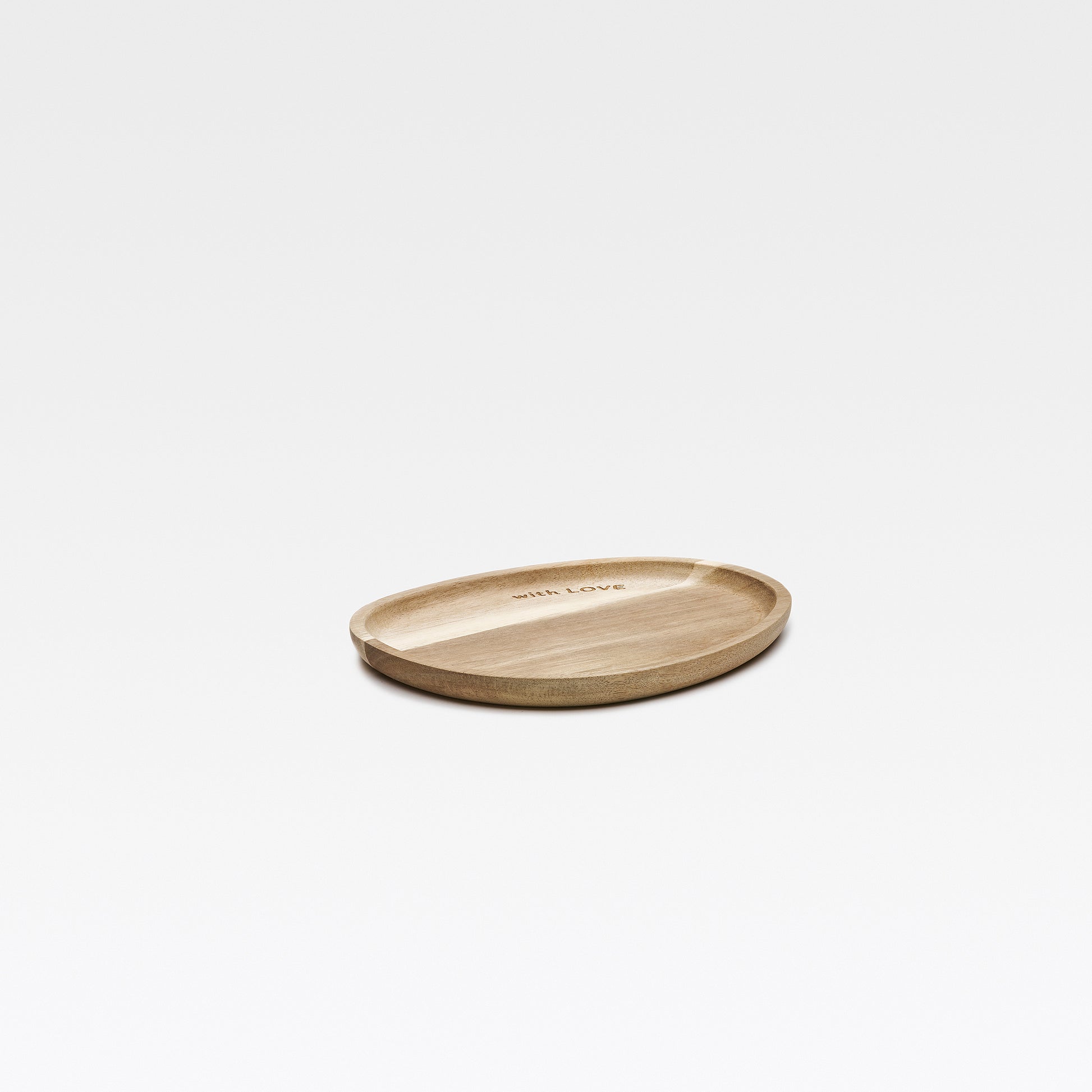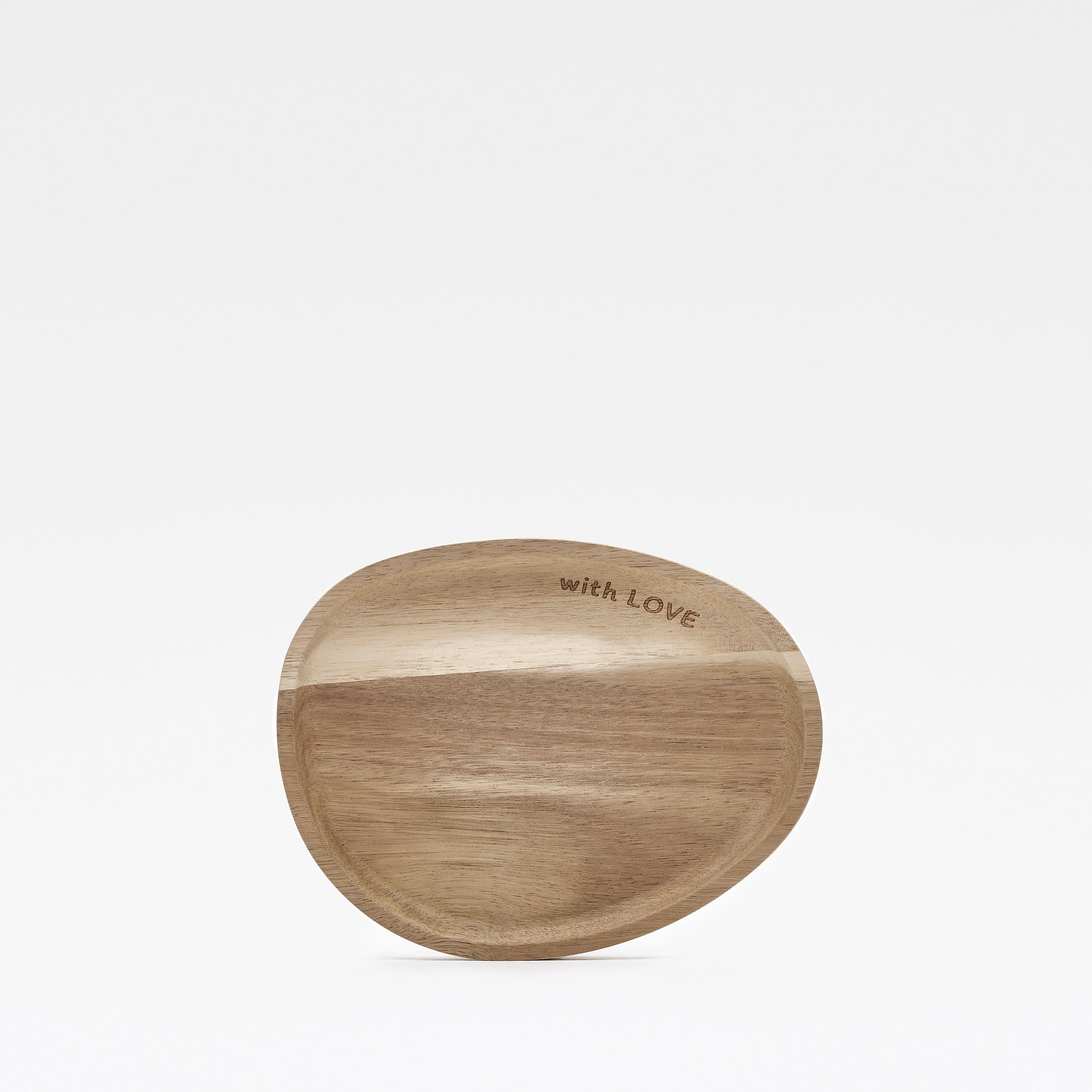 Ein kleines Stück Liebe für Deinen Alltag: Das Holztablett Amore überzeugt mit seiner sanft organischen Form und der feinen Inschrift „with LOVE“, die dem Design eine besondere, emotionale Note verleiht.
