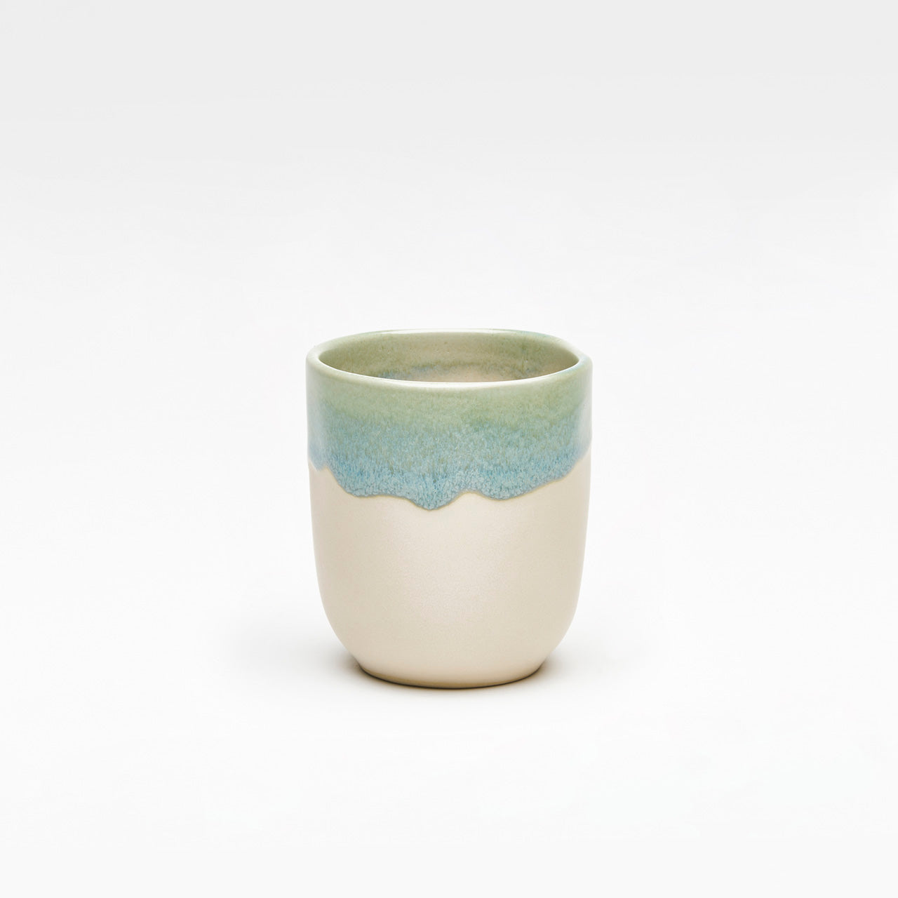 Die sanft changierende Glasur in beruhigendem Grün verleiht dem Becher eine ruhige, organische Ausstrahlung. Gefertigt aus hochwertigem Steinzeug, ist er spülmaschinen- und mikrowellengeeignet – unkompliziert, schön und alltagstauglich.