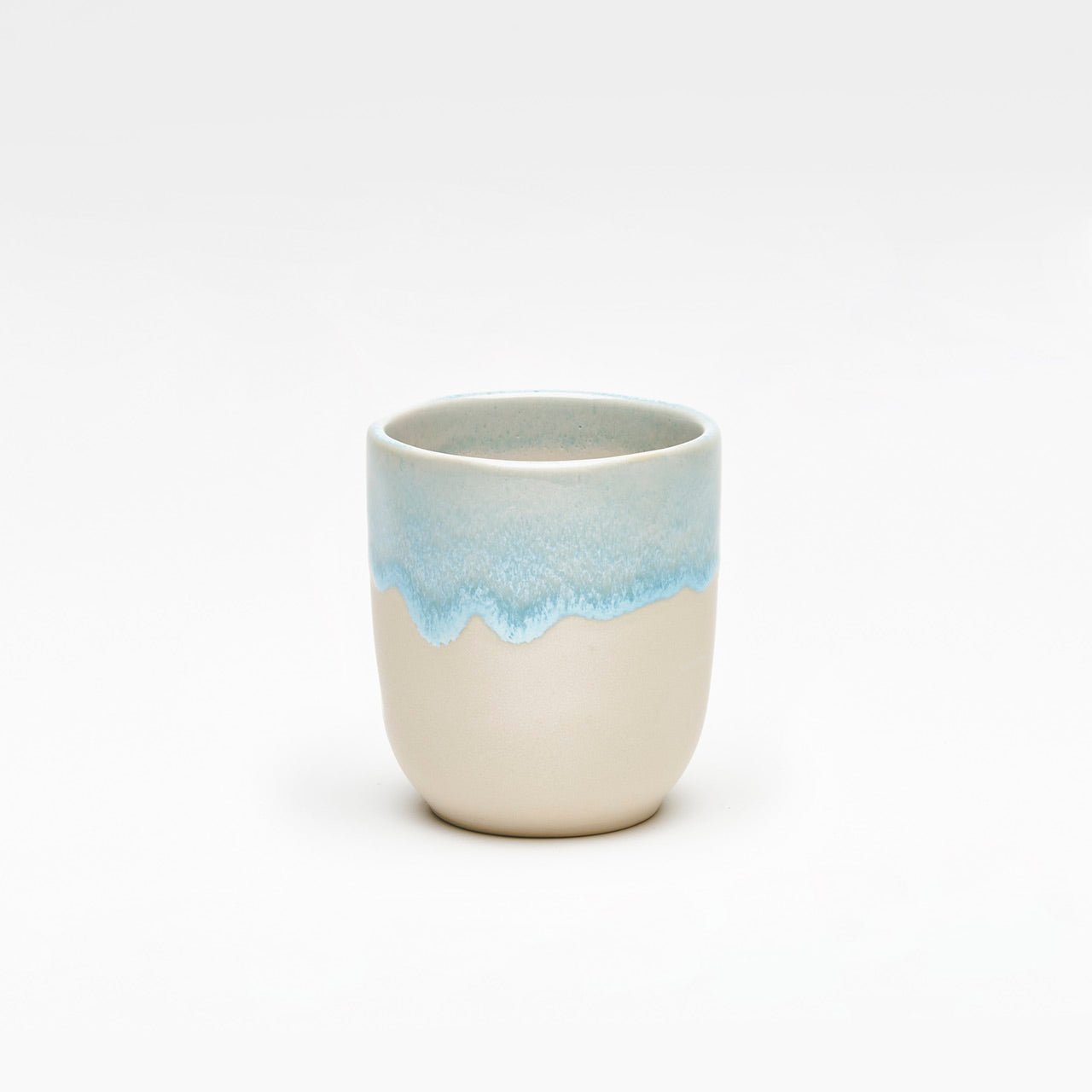 Seine sanfte Glasur in mattem Hellblau wirkt zurückhaltend und modern zugleich. Dank Steinzeug ist der Becher robust, mikrowellen- und spülmaschinengeeignet – eine stilvolle Wahl für jeden Tag.