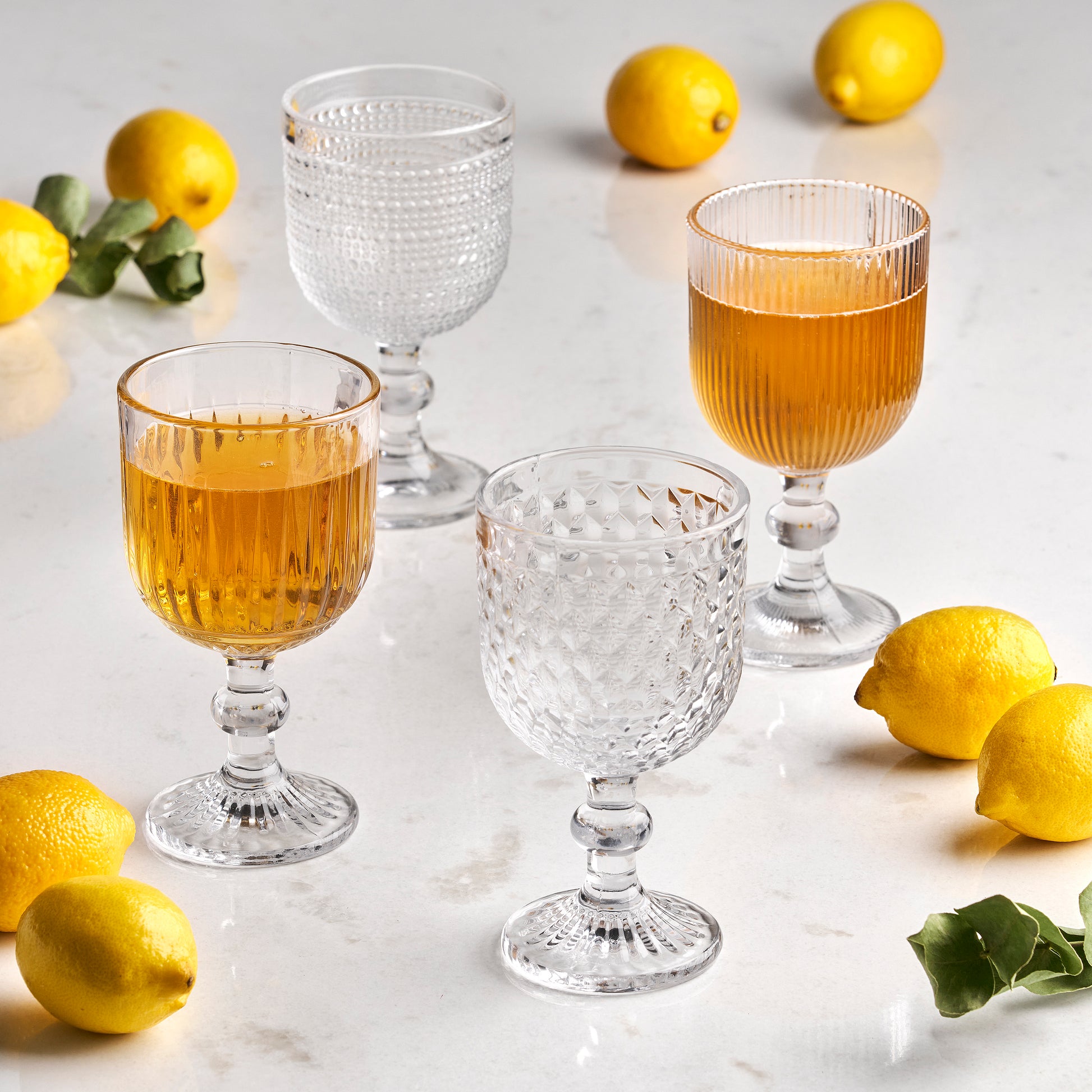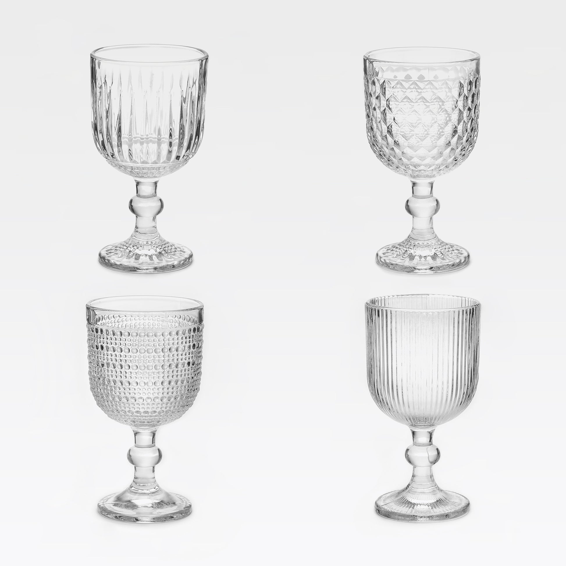 Das 4er Set zeigt vier fein strukturierte Designs, die sich harmonisch ergänzen und jedem Getränk – vom Wein bis zum Spritz – einen besonderen Auftritt verleihen.