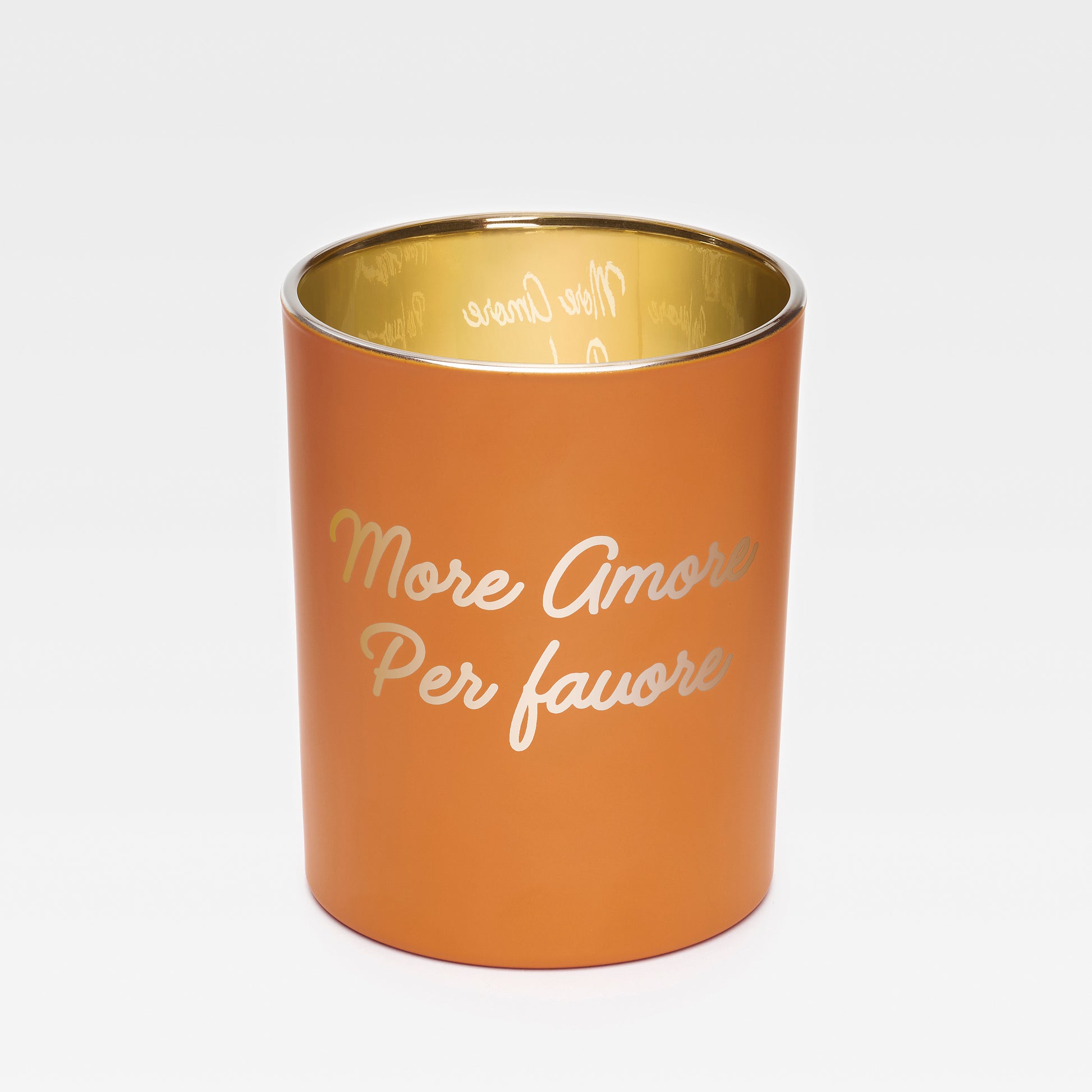 Ein Hauch von Wärme und Gefühl: Das Windlicht Mood – Amore verleiht Deinem Zuhause stimmungsvolles Licht mit einer goldenen Note. Außen in sanftem Orange gehalten und mit dem Schriftzug „More Amore por favore“ verziert, sorgt es für eine liebevolle Atmosphäre – perfekt für gemütliche Abende oder als dekoratives Statement.